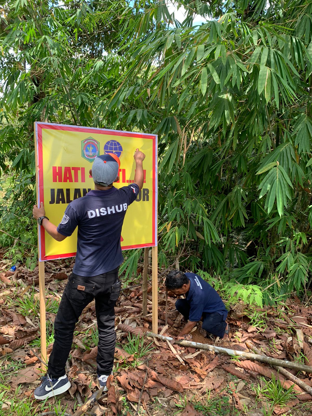 “Oleh sebab itu demi menjaga keselamatan berkendara dan berlalu lintas bagi pengguna jalan, kami dari pihak Dinas Perhubungan Kabupaten Sekadau pada hari ini melakukan bukti nyata memasang rambu lalu lintas di titik tanah longsor tersebut,” ucap Matius Jon.