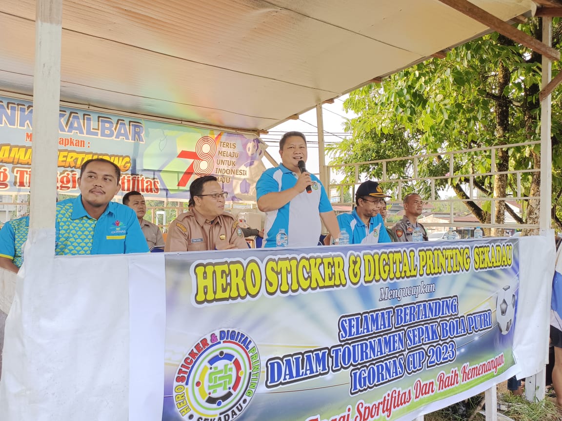 Sekadau Kalbar, Borneokalbar.com - Wakil Bupati Sekadau, Subandrio membuka Open Turnamen Sepak Bola mini Putri Igornas Cup tahun 2023, bertempat di Lapangan Ej Lantu Sekadau. Senin (16/10/2023).